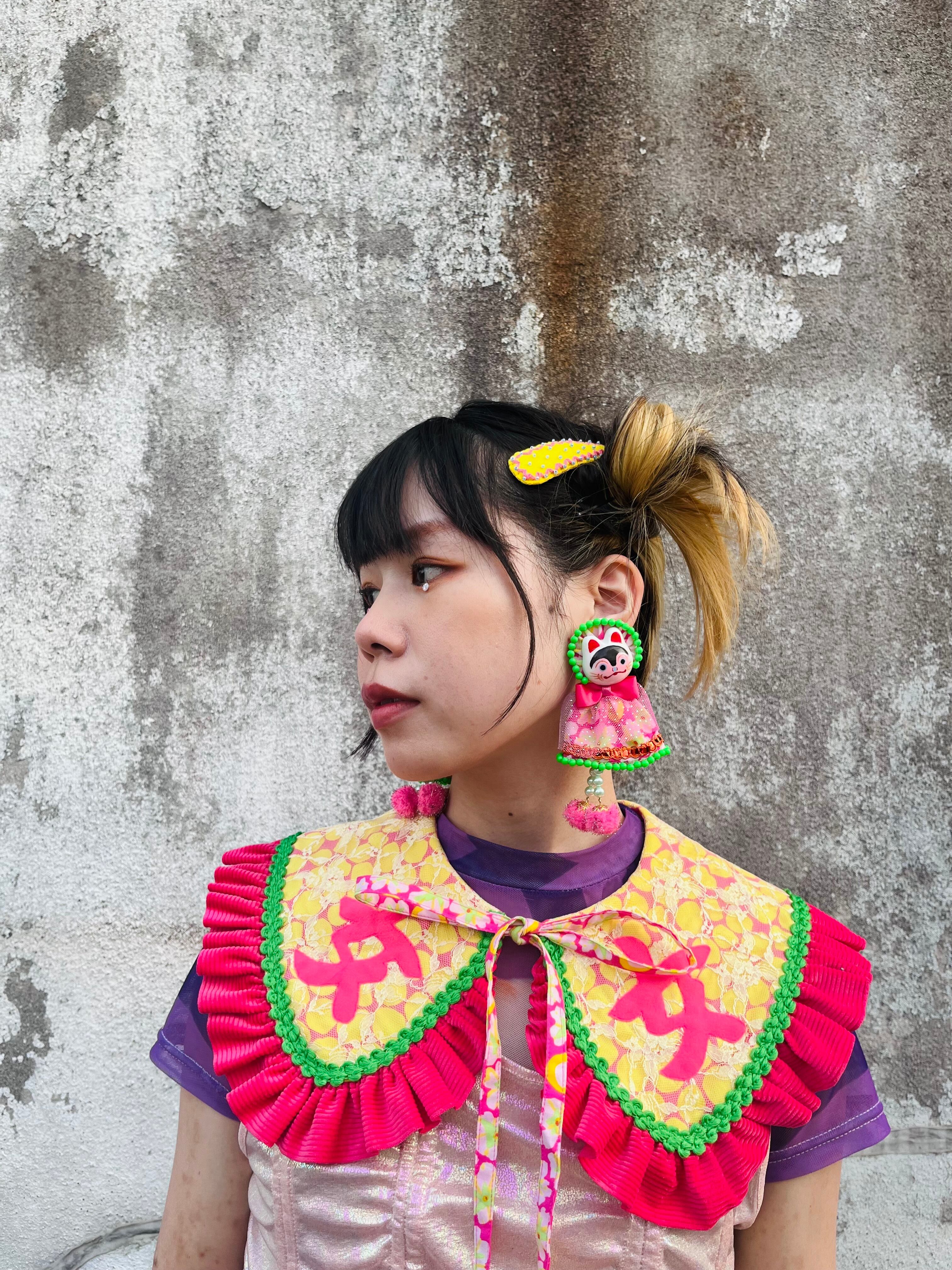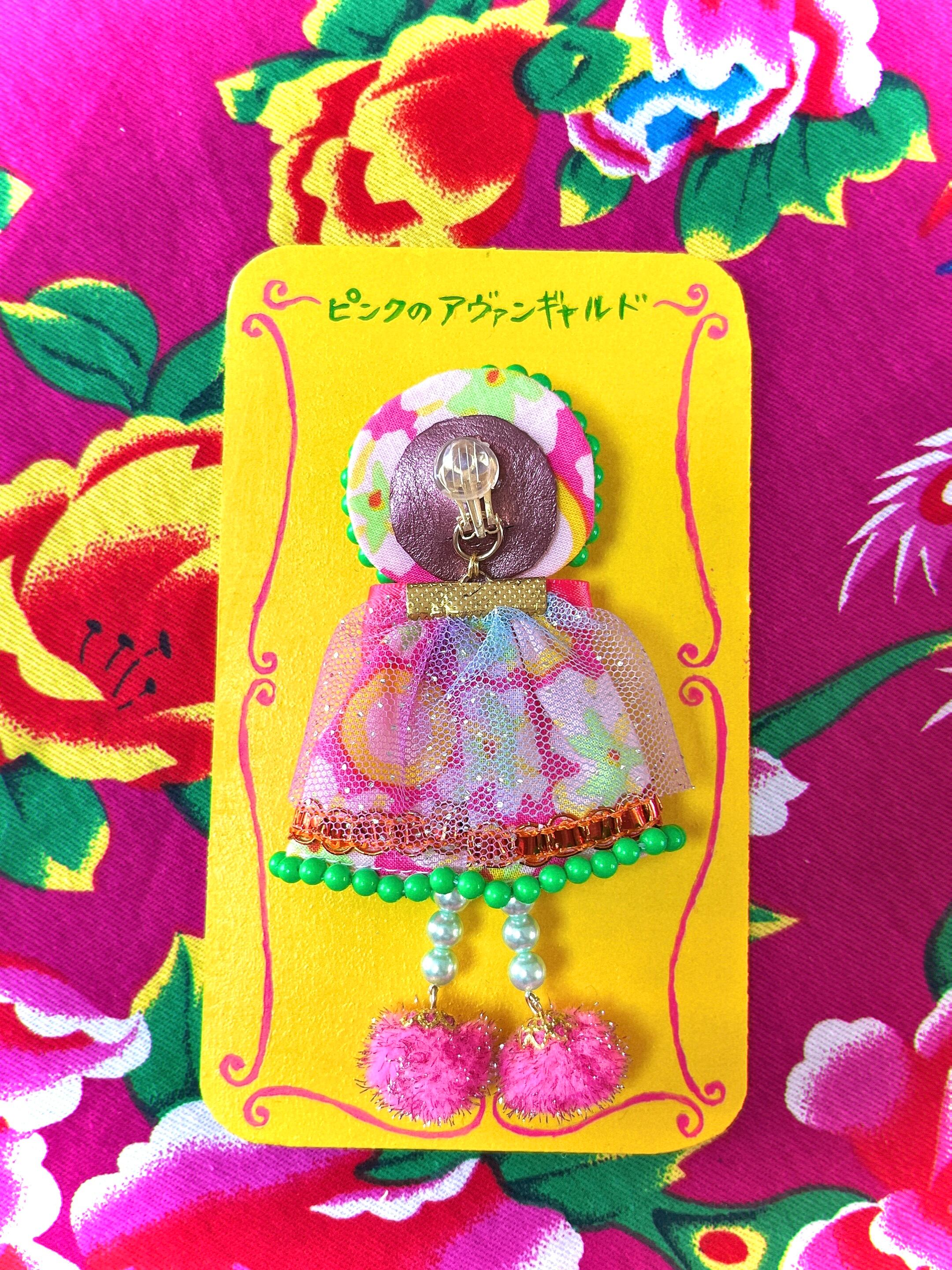 【片耳】犬張子イヤークリップ「ピンクのアヴァンギャルド♡」