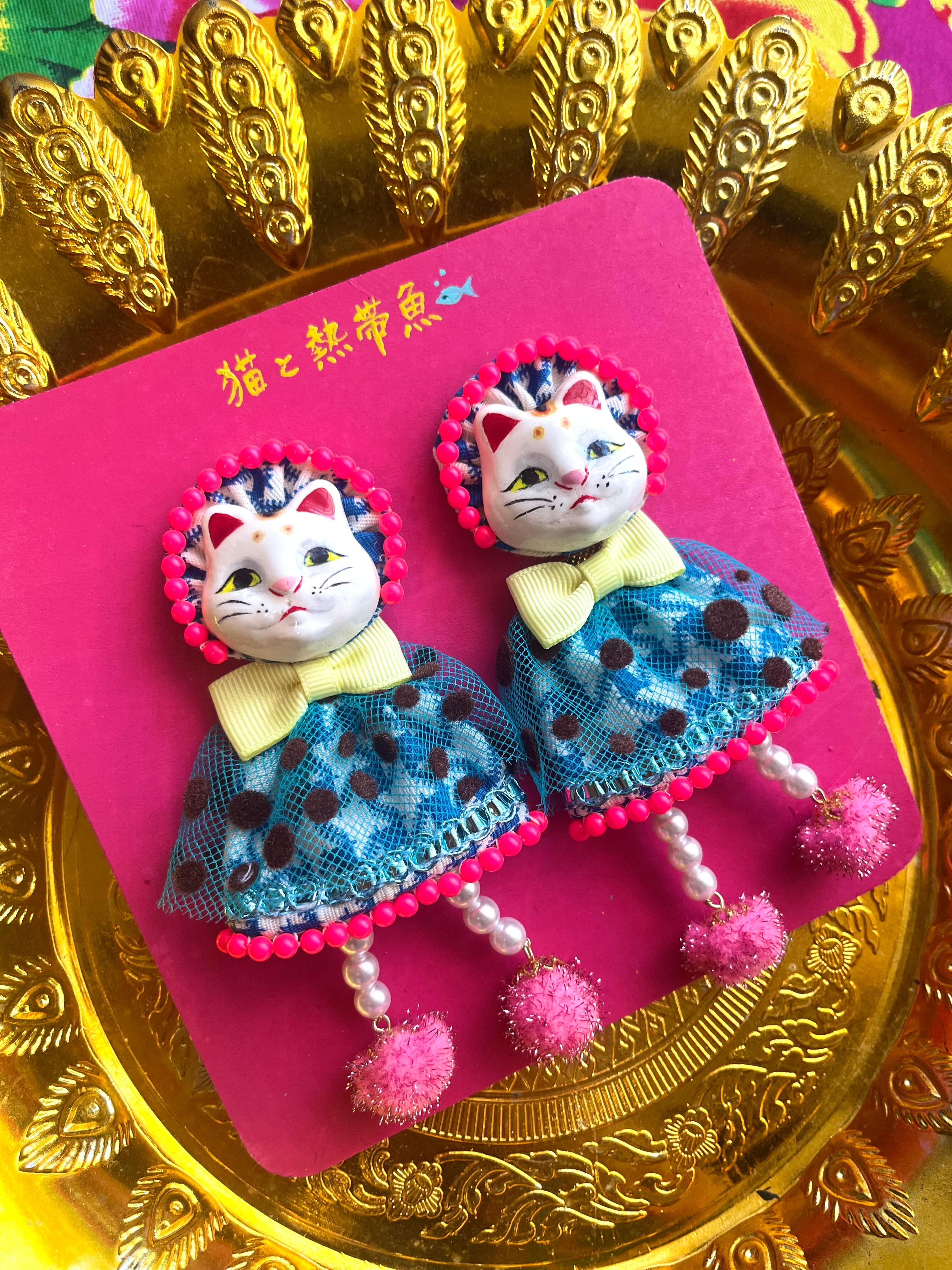 水玉スカートでお洒落した、ちょっぴり気の強そうなまねきねこ。