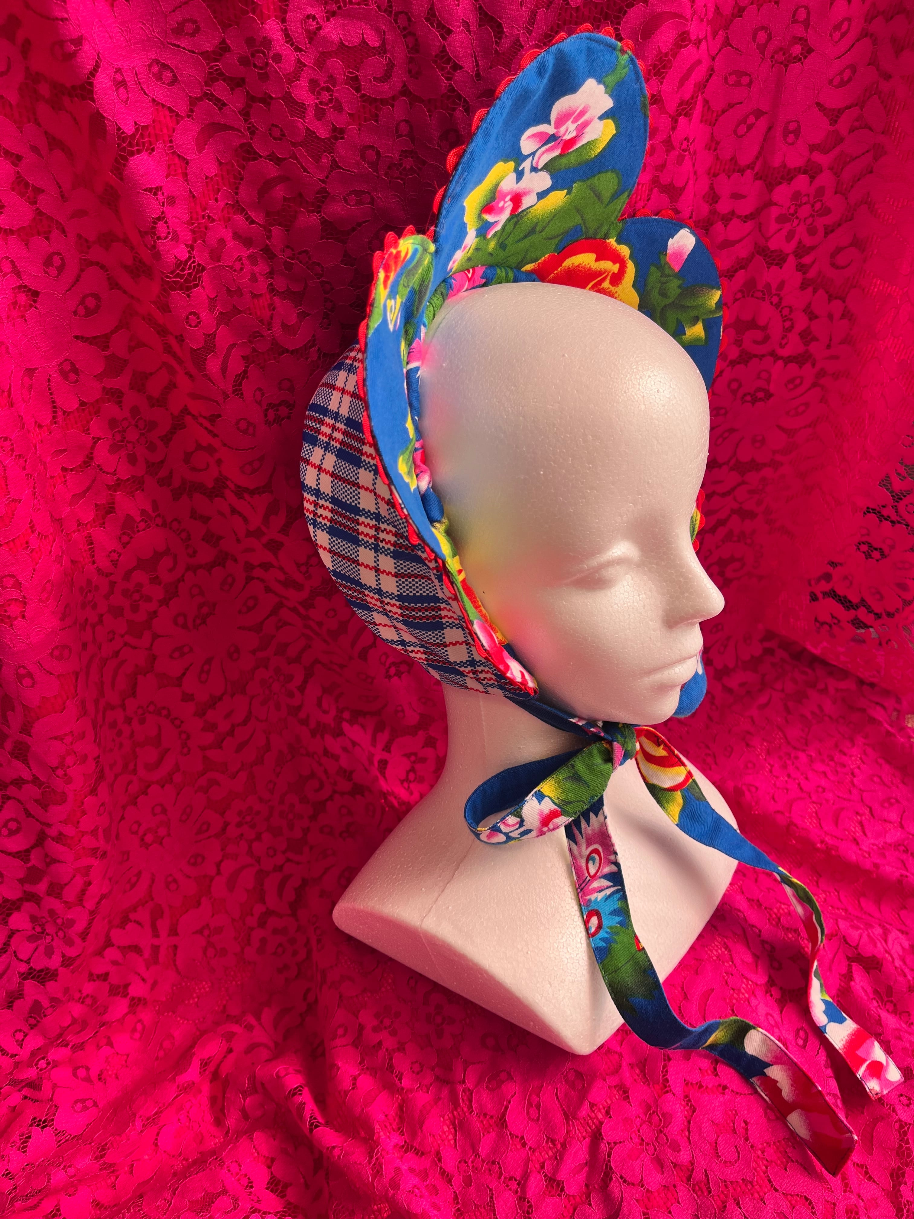 自認お花になれるリバーシブルボンネット(青)